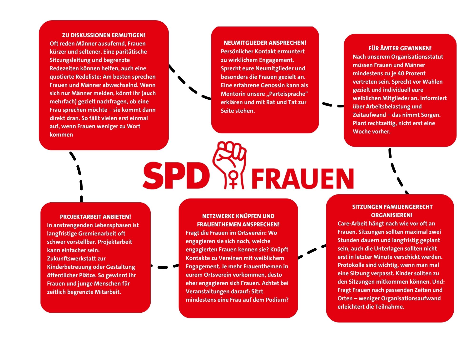 Frauenwahlrecht, Gleichberechtigung im Grundgesetz, Kampf um Parität: Ohne unsere SPD hätten Frauen in Deutschland viel weniger zu sagen. Und Frauen wählen öfter als Männer unsere Partei. Wie können wir noch mehr Frauen für die SPD gewinnen?